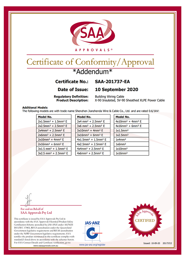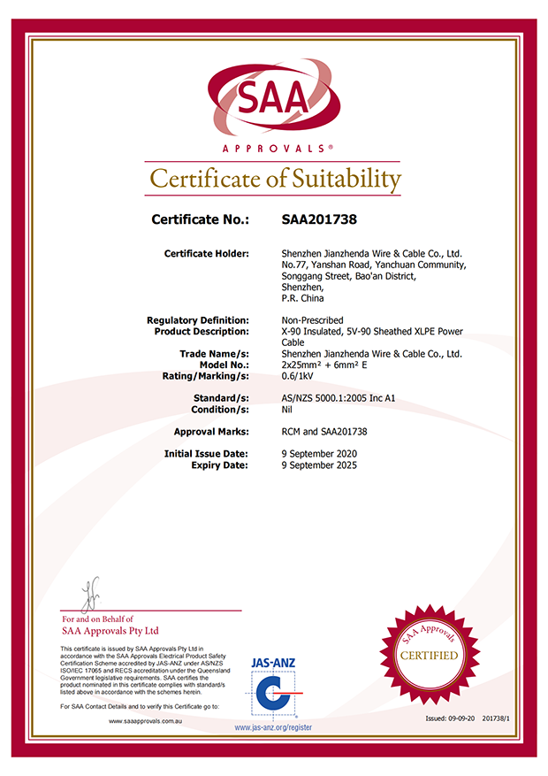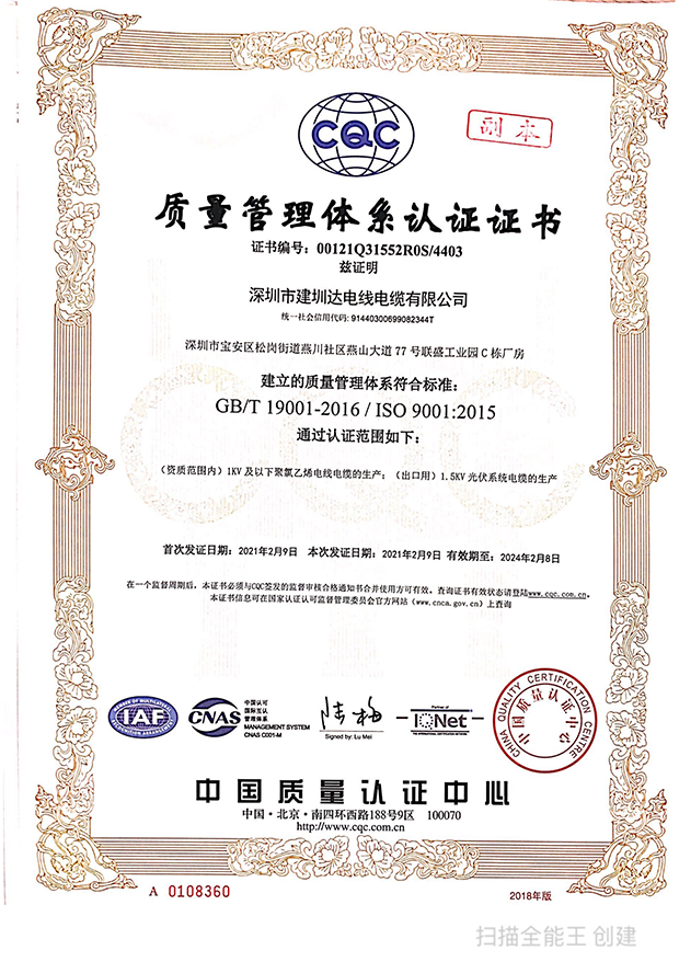 深圳建圳達(dá)電線電纜有限公司,成立于2000年,是一家電線電纜制造商,我們通過了世界各地不同市場的多數(shù)認(rèn)證,如:CCC、RoHS、CB、SAA、TUV、VDE、PSE、BPS、UL、CSA。我們根據(jù)定制產(chǎn)品不斷更新新的認(rèn)證。經(jīng)過數(shù)十年的發(fā)展,我們與來自世界各地的客戶建立了長期的合作關(guān)系。我們曾經(jīng)是菲律賓機場,,柬埔寨的電力站,美國的醫(yī)院,工廠,埃塞俄比亞的水電站項目。我們是一家值得信賴的電線供應(yīng)商。
