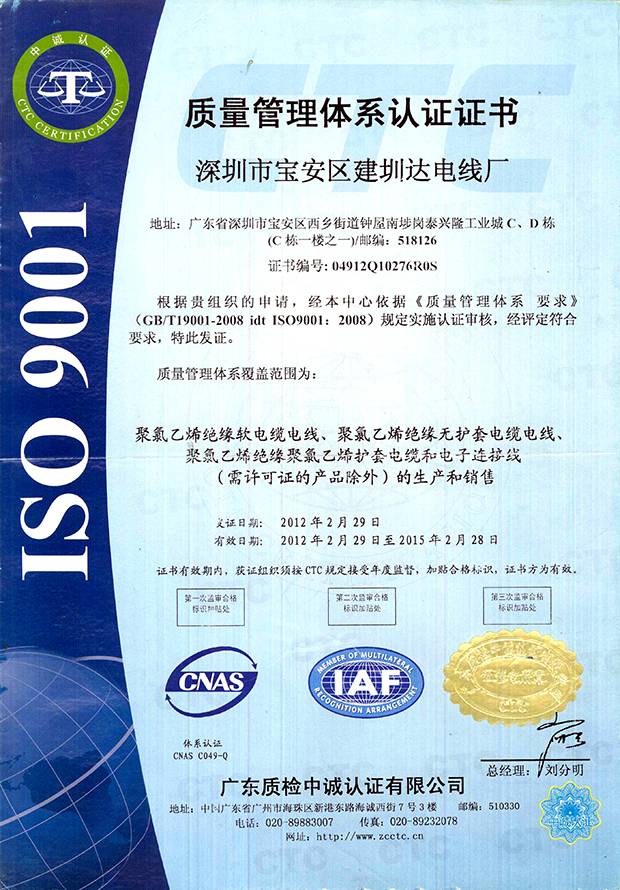 建圳達(dá)電纜立足于中國深圳,擁有技術(shù)精湛的隊伍、現(xiàn)代化生產(chǎn)設(shè)備、精密的檢測儀器,從原材料、生產(chǎn)、成品嚴(yán)格按照國家標(biāo)準(zhǔn)檢測,通過多個認(rèn)證。
